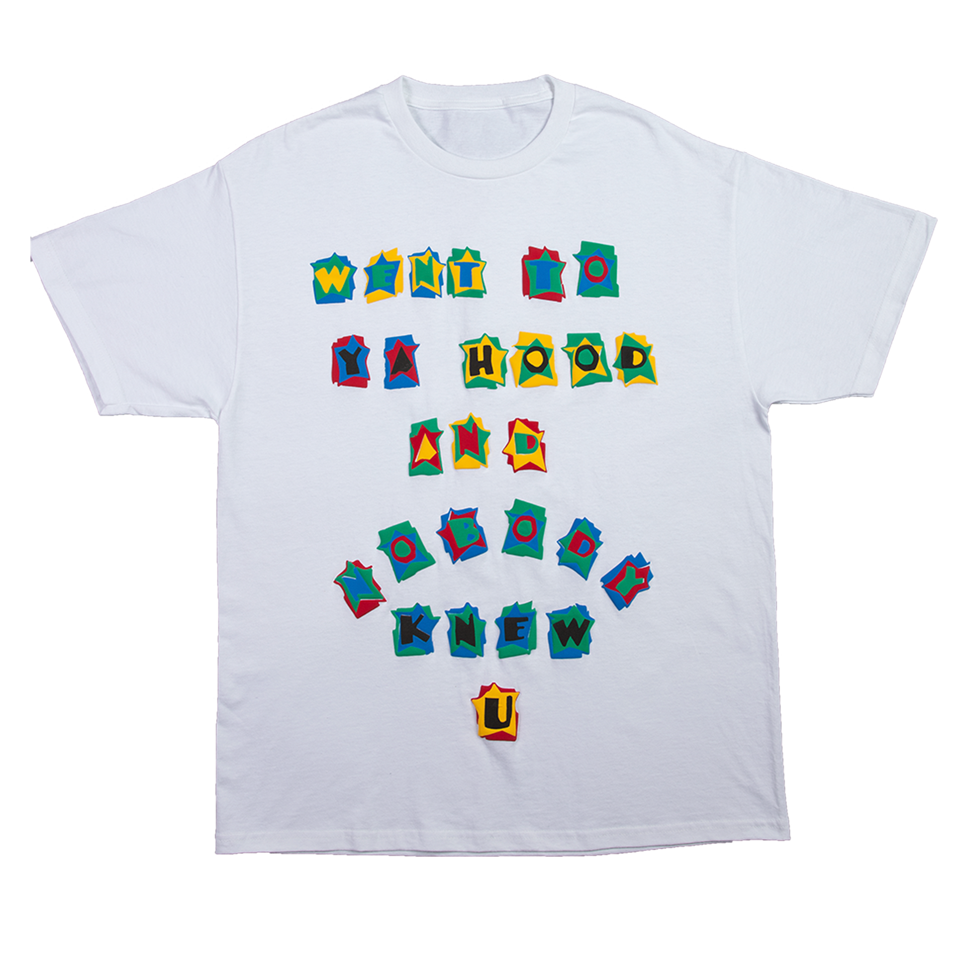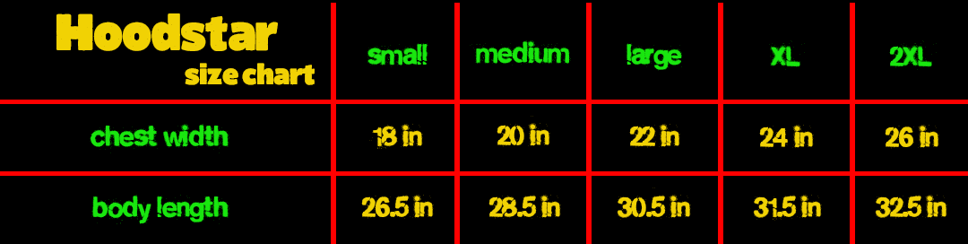 In our legendary Hoodstar font, this is the most majestic tee and design out there. Limited to 100 peices, this shirt features our signature puff print that spells out our mantra, each letter with a different combo of vibrant color. Sure to turn heads or recieve compliments once read, this ones a show stopper!!