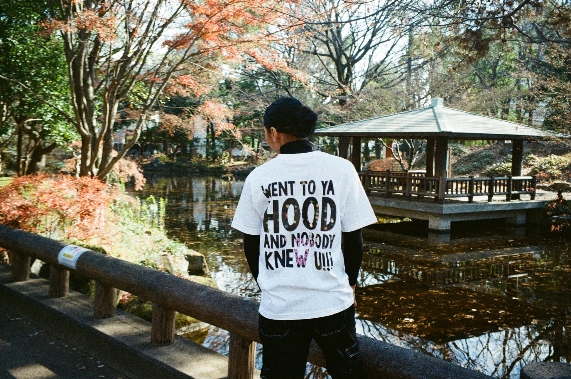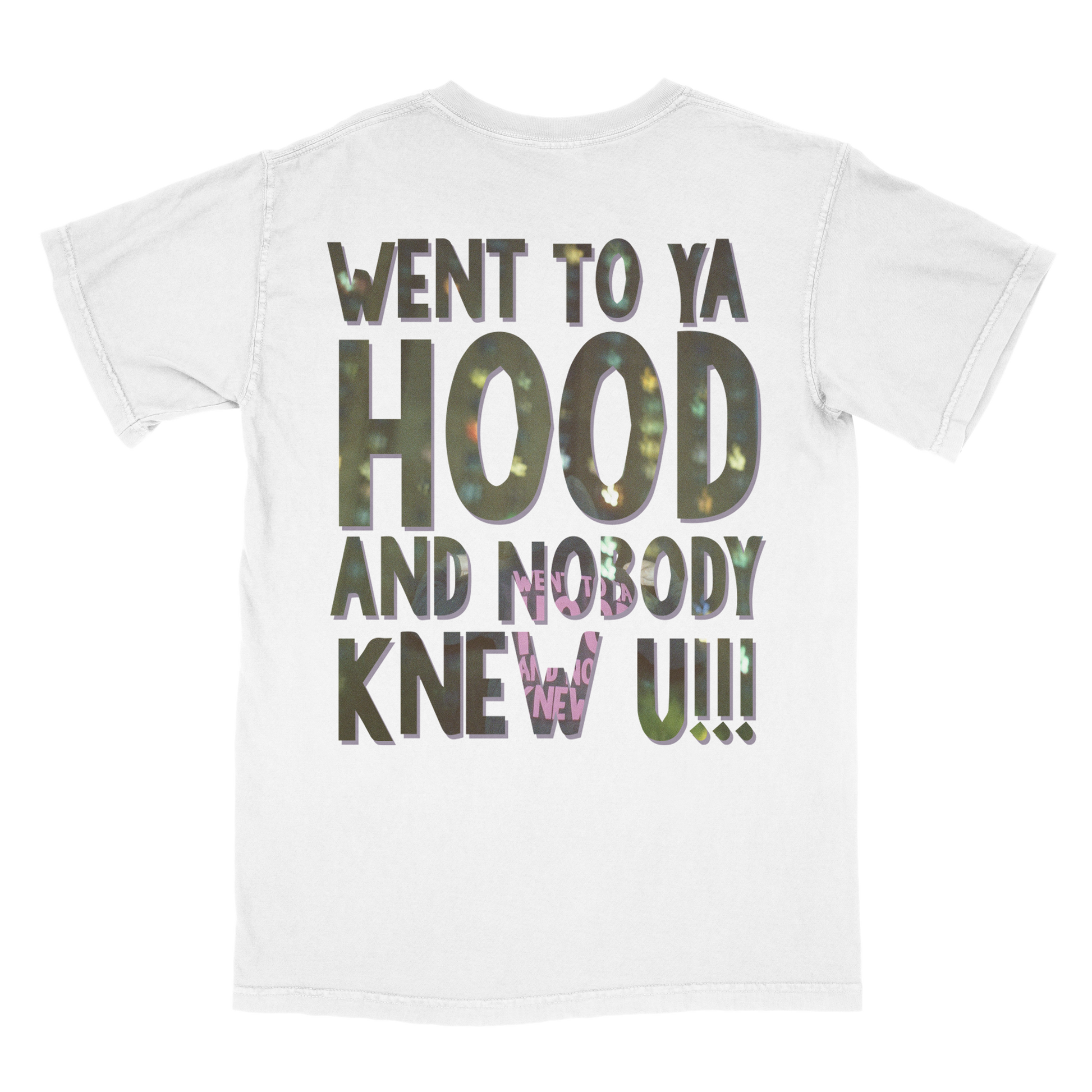 Front of the shirt has the mantra in a ransom font with the African American flag and Japanese flag crossing and the BACK of the shirt has a special graphic featuring Polo Grounds Projects inside of the logo.