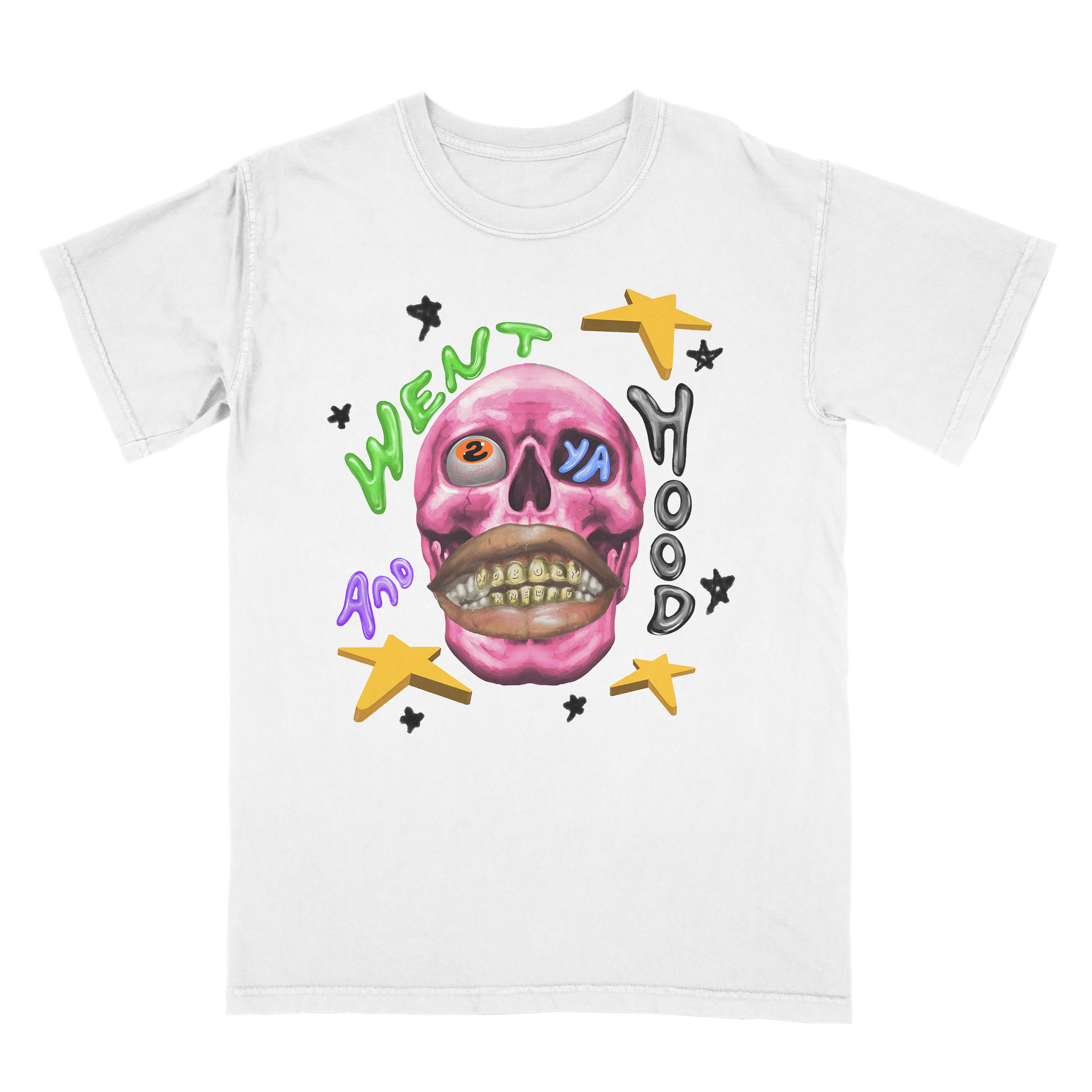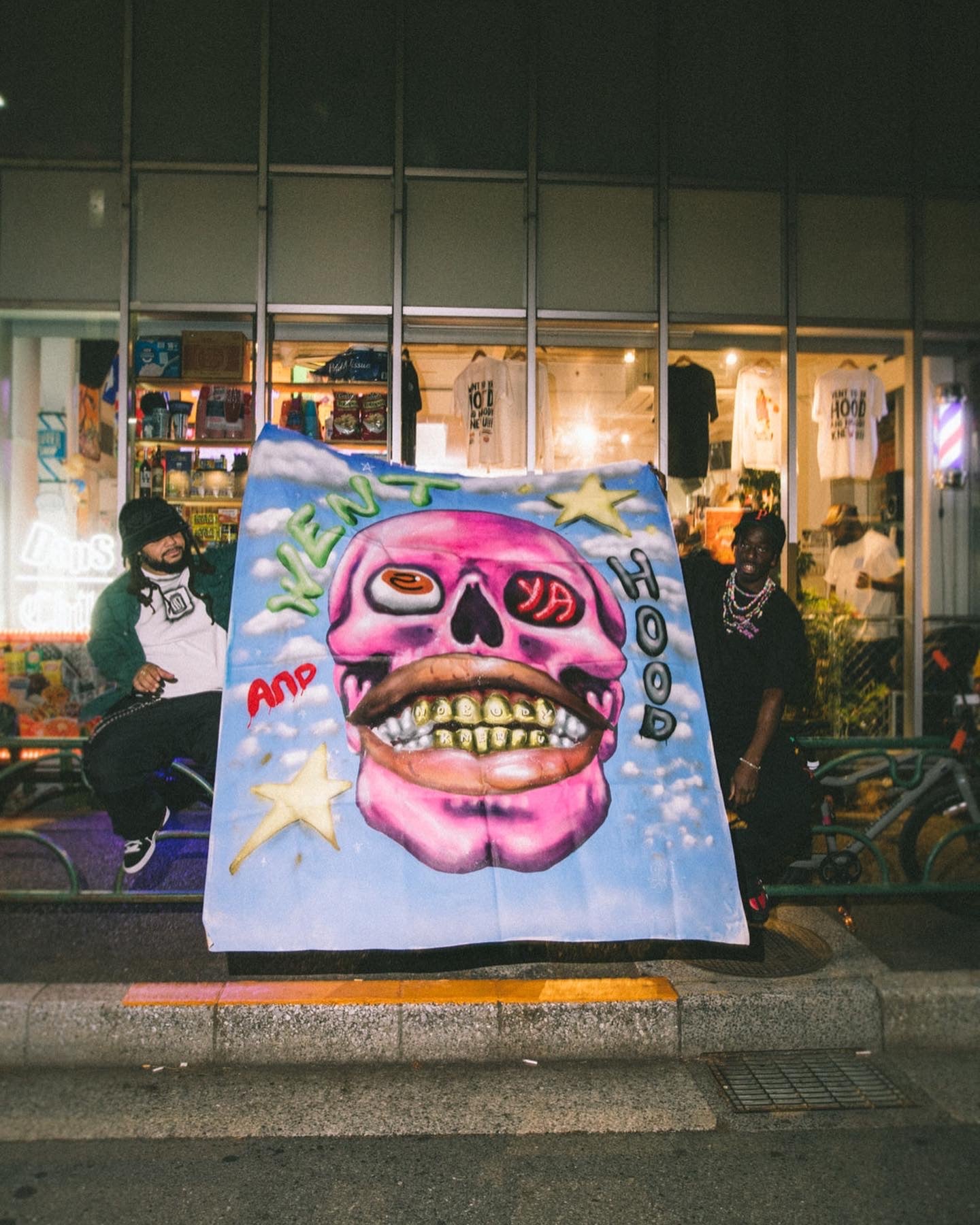 July 2022, STFU aka Omi creates a 6 foot mural the night before our 2nd pop up. A year and a half after that in December 2023, for the Poppin Overseas Tokyo Takeover we printed 50 peices of it on tees and sold out in Japan. 3 years after its inception, the shirt is now available in every size to our fam around the world.